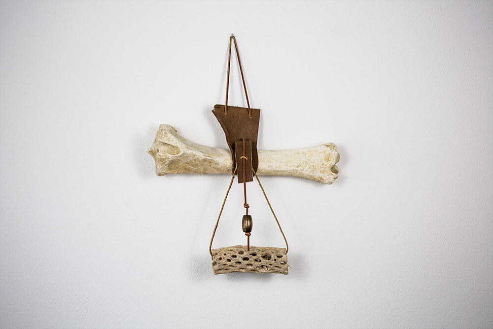 Bone, leather, wood, feathers 11” x 21”, 2015