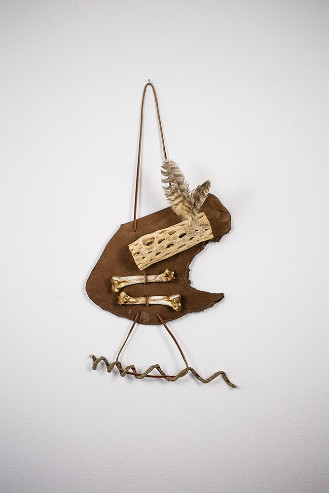 Bone, leather, wood, feathers 15" x 19", 2015
